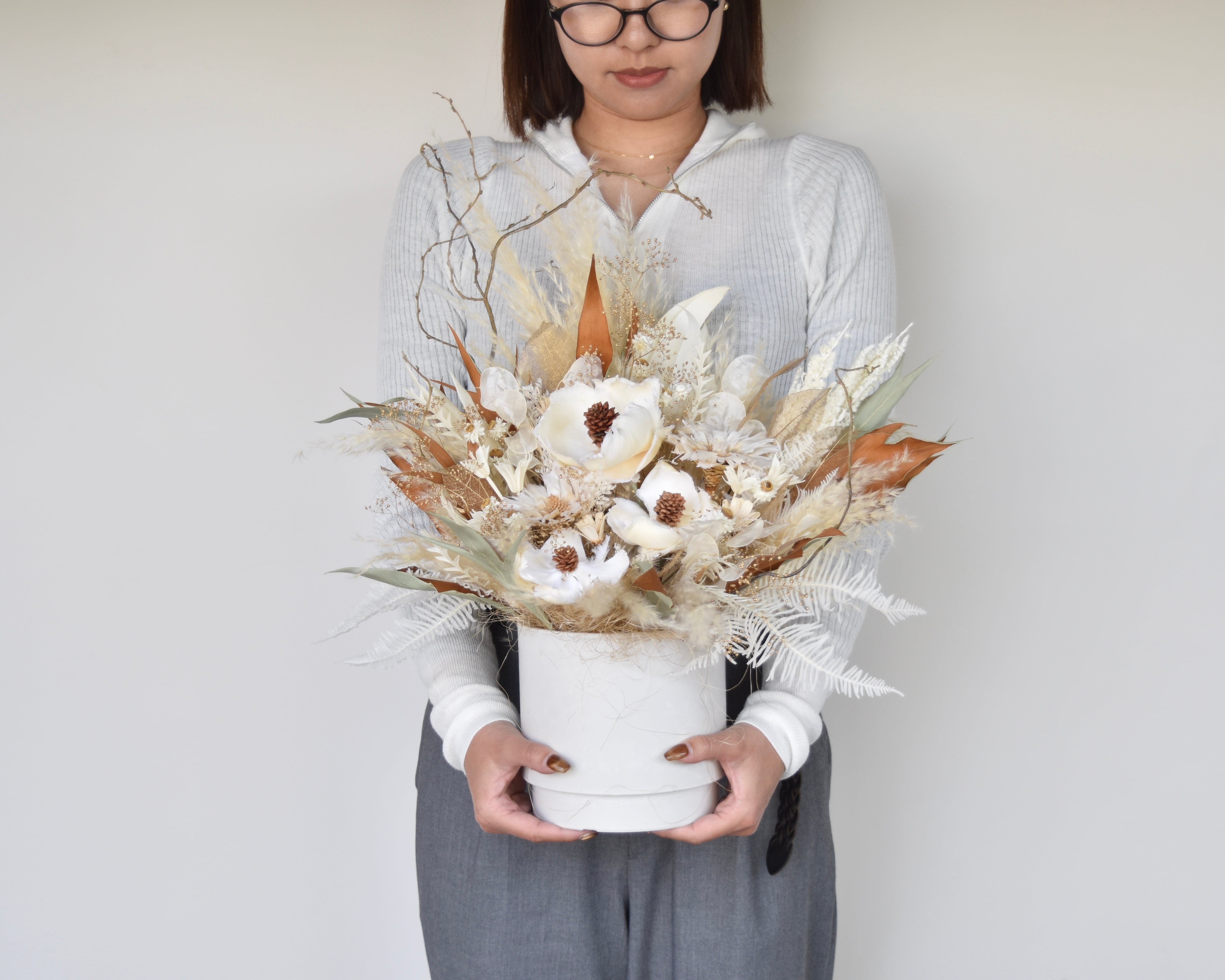 【お祝いギフトにおすすめ】フラワーアレンジメントLL ドライフラワーMix /開店祝い/誕生日